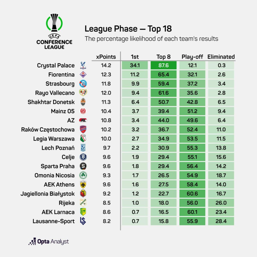 Superkompjuteri i Optas ka bërë parashikimin e Ligës së Konferencës, teksa i jep Dritës 34.6 përqind gjasa për t’u kualifikuar në Play-Off.