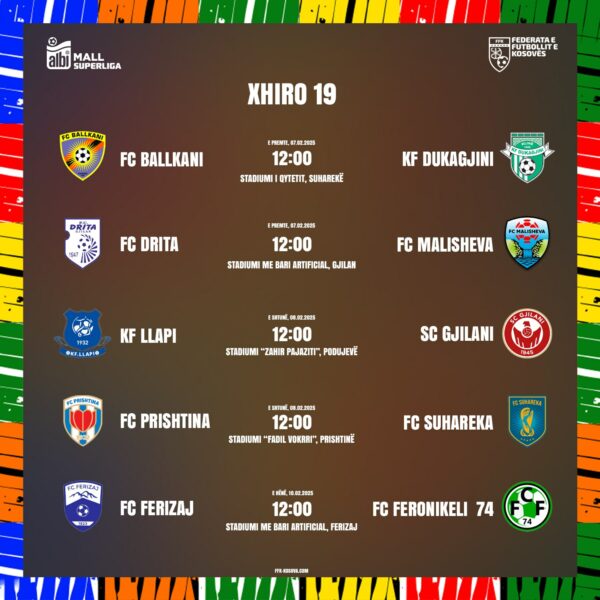 Superliga e Kosovës në futboll do të rikthehet këtë javë me ndeshjet e xhiros së 19-të.