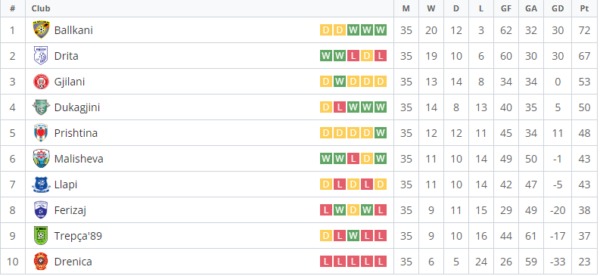 Ndërkaq, për pozitën e katërt deri në fund do të garojnë Dukagjini dhe Prishtina. Kjo pozitë mund t’i hyjë në punë njerës skuadër, për të siguruar daljen në Evropë.