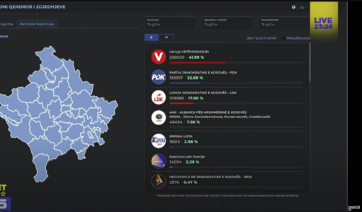 Të dhënat e fundit të KQZ-së: VV 41.99%, PDK 22.68%, LDK 17.90% ndërsa AAK 7.56%