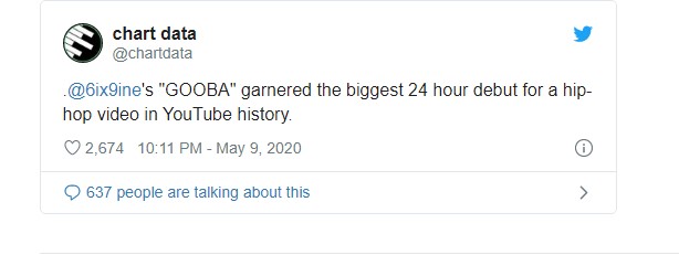 Ai publikoi këngën e tij të titulluar “GOOBA”, me të cilën brenda 24 orëve mori më shumë se 43.5 milion klikime në Youtube.