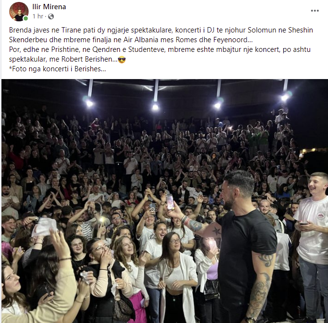 Por, edhe ne Prishtine, ne Qendren e Studenteve, mbreme eshte mbajtur nje koncert, po ashtu spektakular, me Robert Berishen…?”