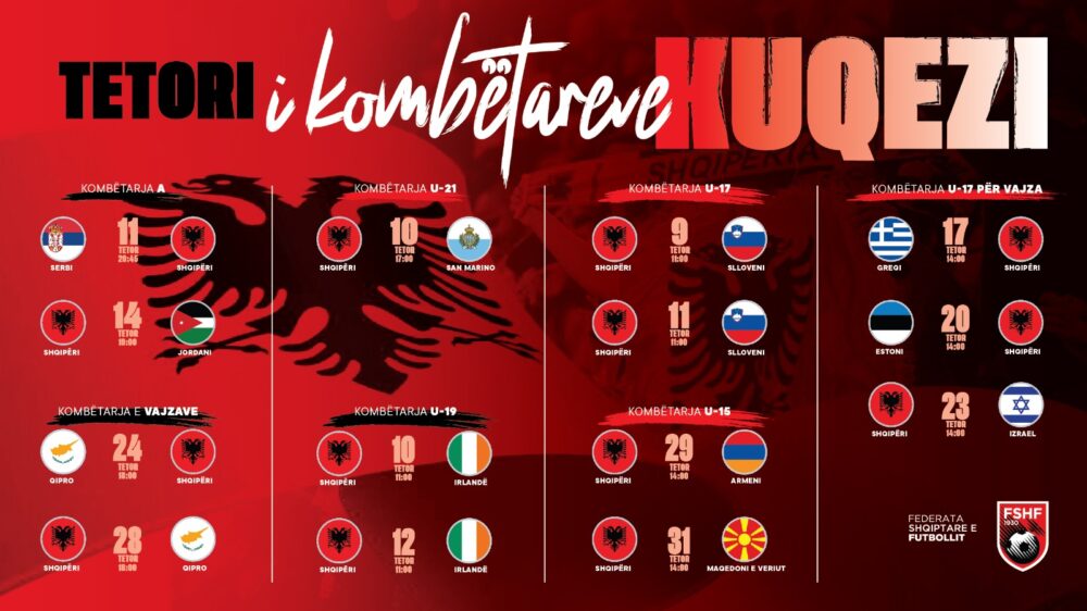 Pas një shtatori të mbushur me emocione, tetori do të sjellë sërish një kalendar të ngjeshur me ndeshje për të gjitha kombëtaret shqiptare.