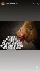 “Bota është një xhungël. Ose lufton për atë që do ose nëpërkëmbesh nga ata që duan më shumë”, shkruan në mbishkrimin e fotografisë.