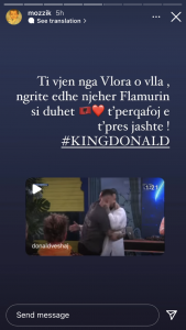 “Ti vjen nga Vlora, o vlla, ngrite edhe një herë Flamurin si duhet. Të përqafoj e të pres jashtë! King Donaldi!”.- ka shkruar ai.