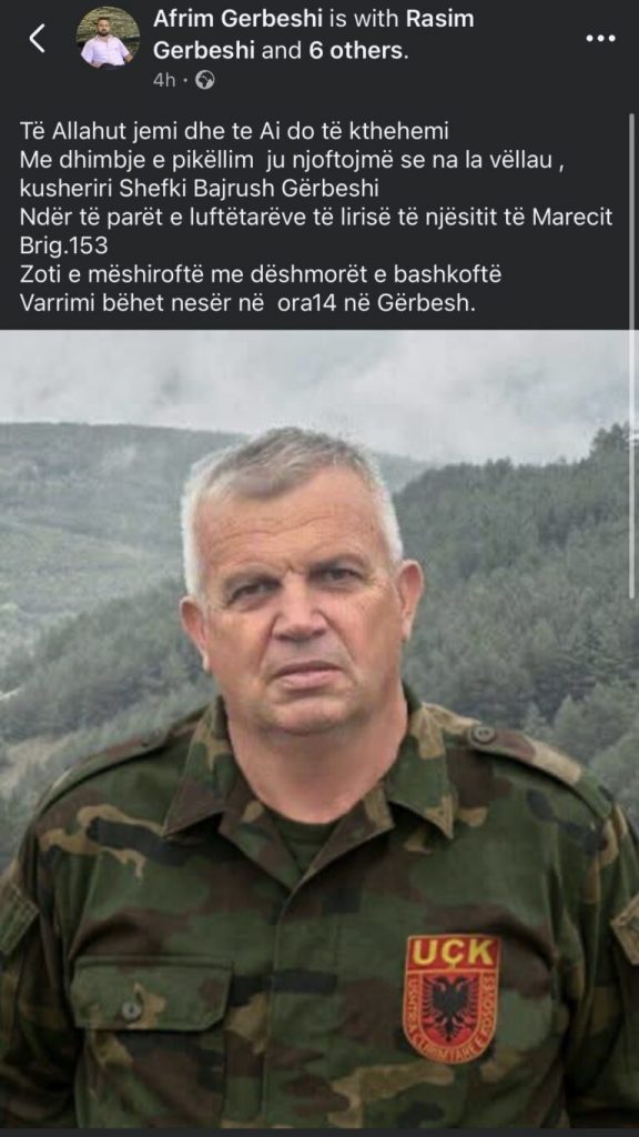 Ka ndërruar jetë ditën e sotme ish-ushtari i Ushtrisë Çlirimtare të Kosovës (UÇK), Shefki Bajrush Gërbeshi.