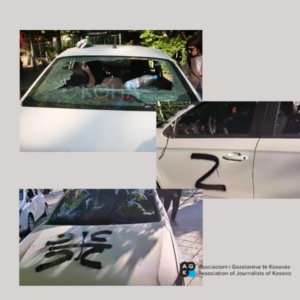 Në fotografitë dhe videon e publikuar nga mediumi, shihen xhamat e thyer, gomat e shpërthyera, simbole nacionaliste të shënuara në veturë, si dhe pasqyret i mungojnë.