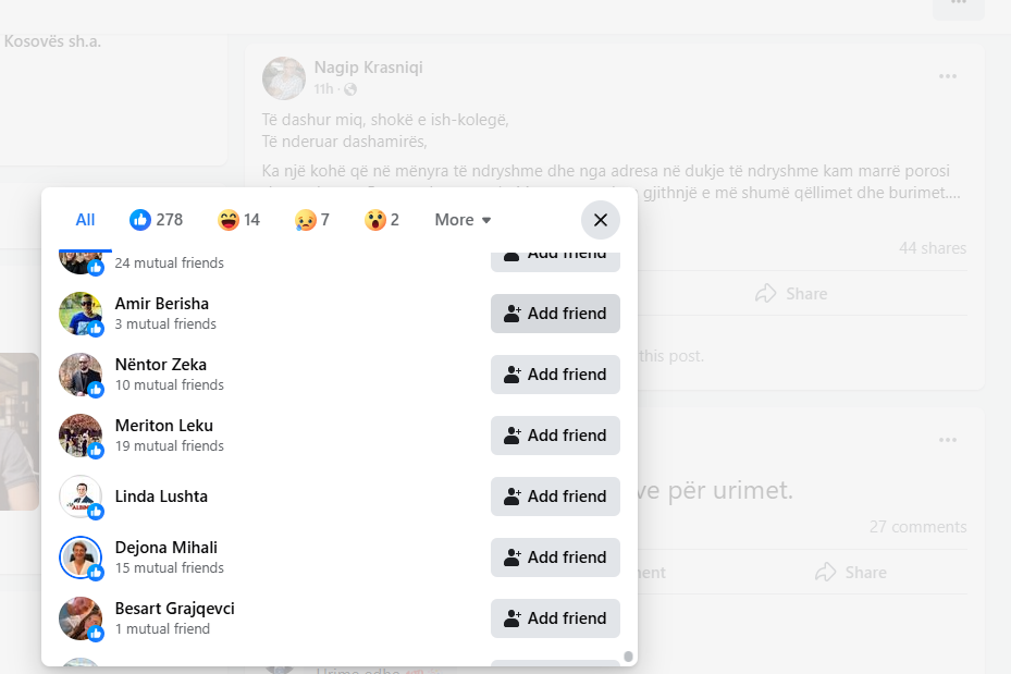Madje, disa prej figurave si Arbër Zaimi, Agon Batusha, Egzon Azemi e kanë shpërndarë postimin e njëjtë.