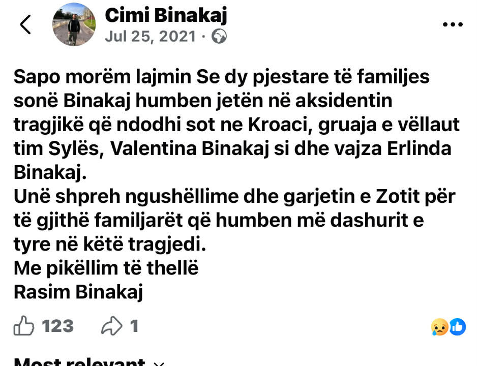 Rasim Binakaj, 38-vjeçari i cili mbeti i vrarë nga arma e zjarrit, është xhaxhai i ish-finalistes së Big Brother VIP Kosova 4, Elijona Binakaj.