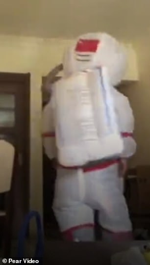 Një person i njohur me emrin Li, ka blerë një kostumin astronauti në internet për ta përdorur në rastet kur ai është në kontakt me ambientet e jashtme.