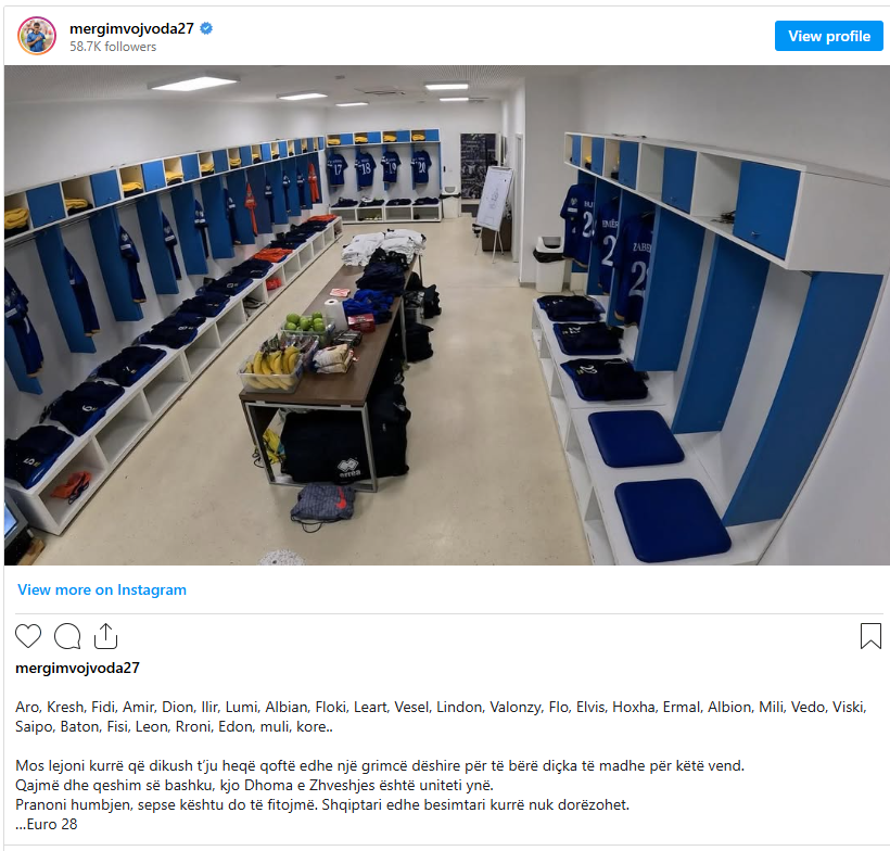 Më poshtë mund ta shihni postimin e futbollistit të Comos drejtuar shokëve të Kombëtares, të cilit ia përcolli një fotografi nga dhoma e zhveshjes e ekipit dardan, shkruan Express, transmeton Periskopi.