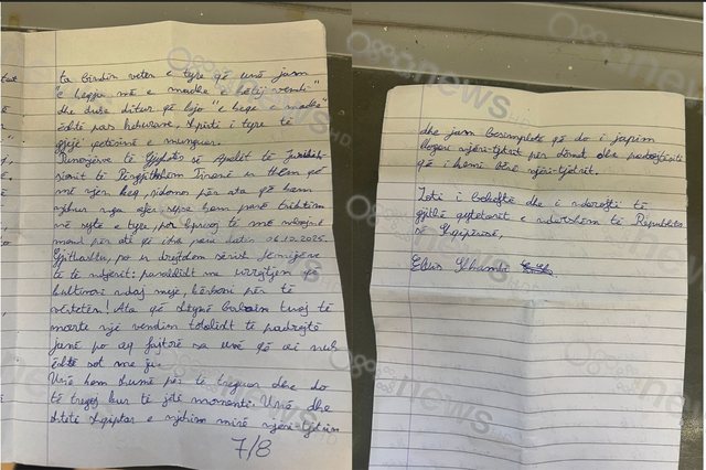 Kjo është letra e dërguar nga Elvis Shkambi: