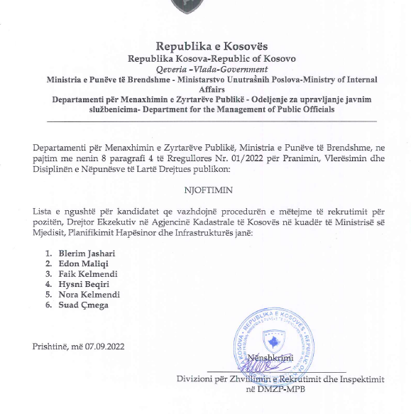 Kujtojmë që Drejtor i Kadastrit të Kosovës ishte Avni Ahmeti, i cili dha dorëheqje para 1 viti e gjysmë.