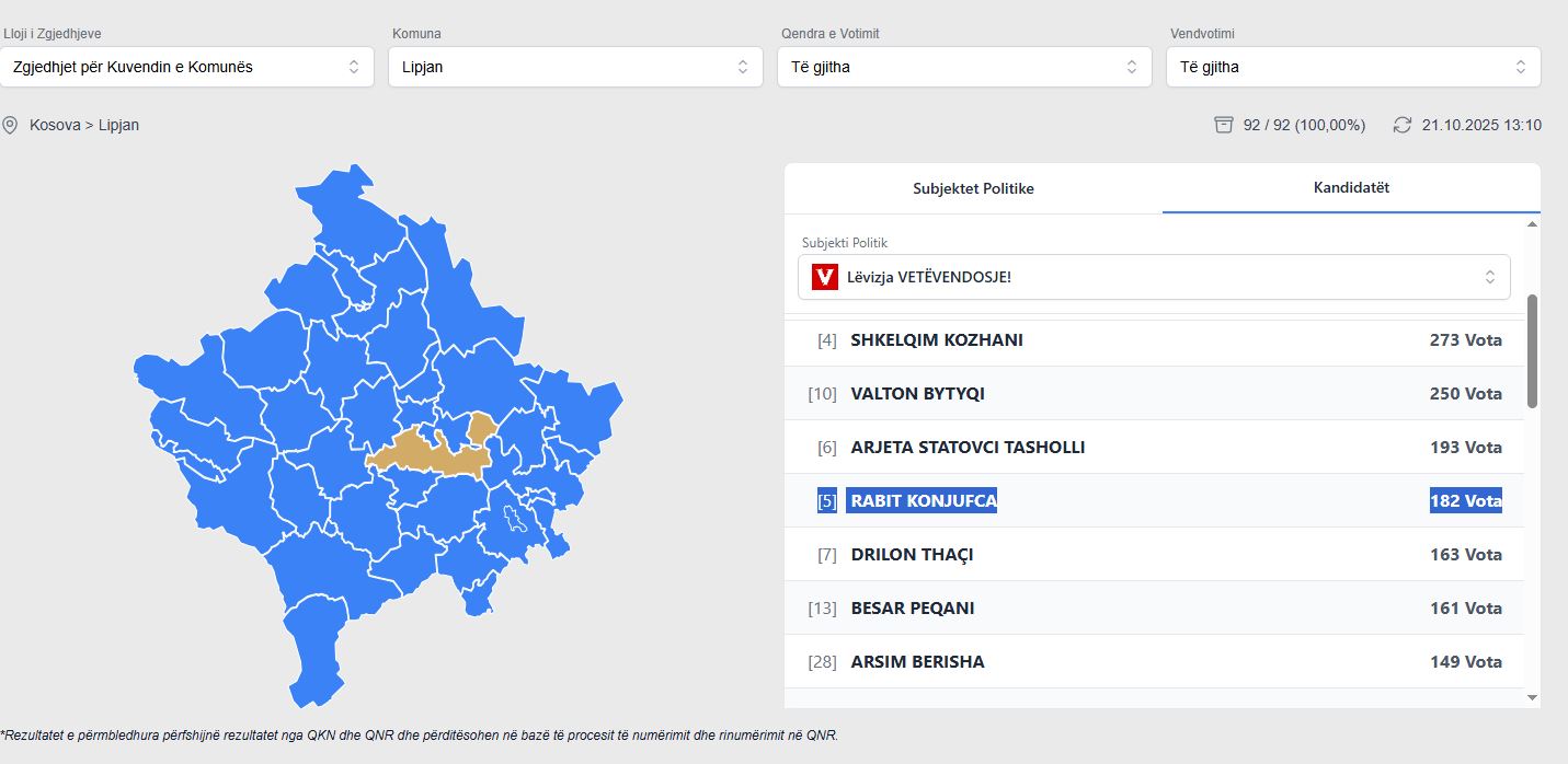 Nga votat e numëruar në QKN dhe QNR deri më tani, Rabit Konjufca i ka 182 vota, që nuk janë të mjaftueshme për t’u bërë asamblist.