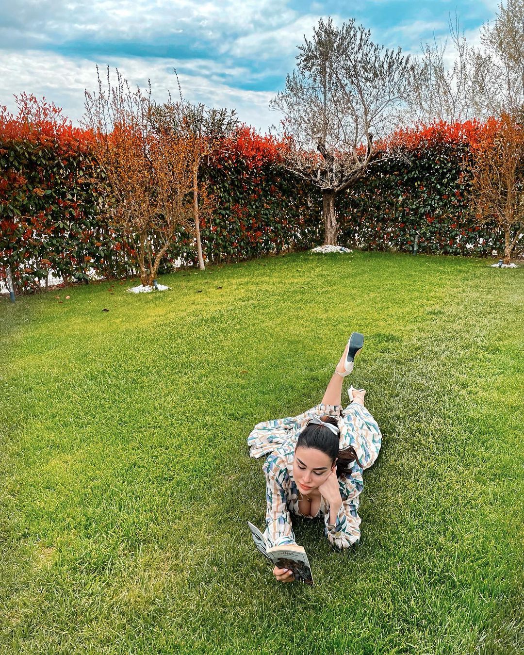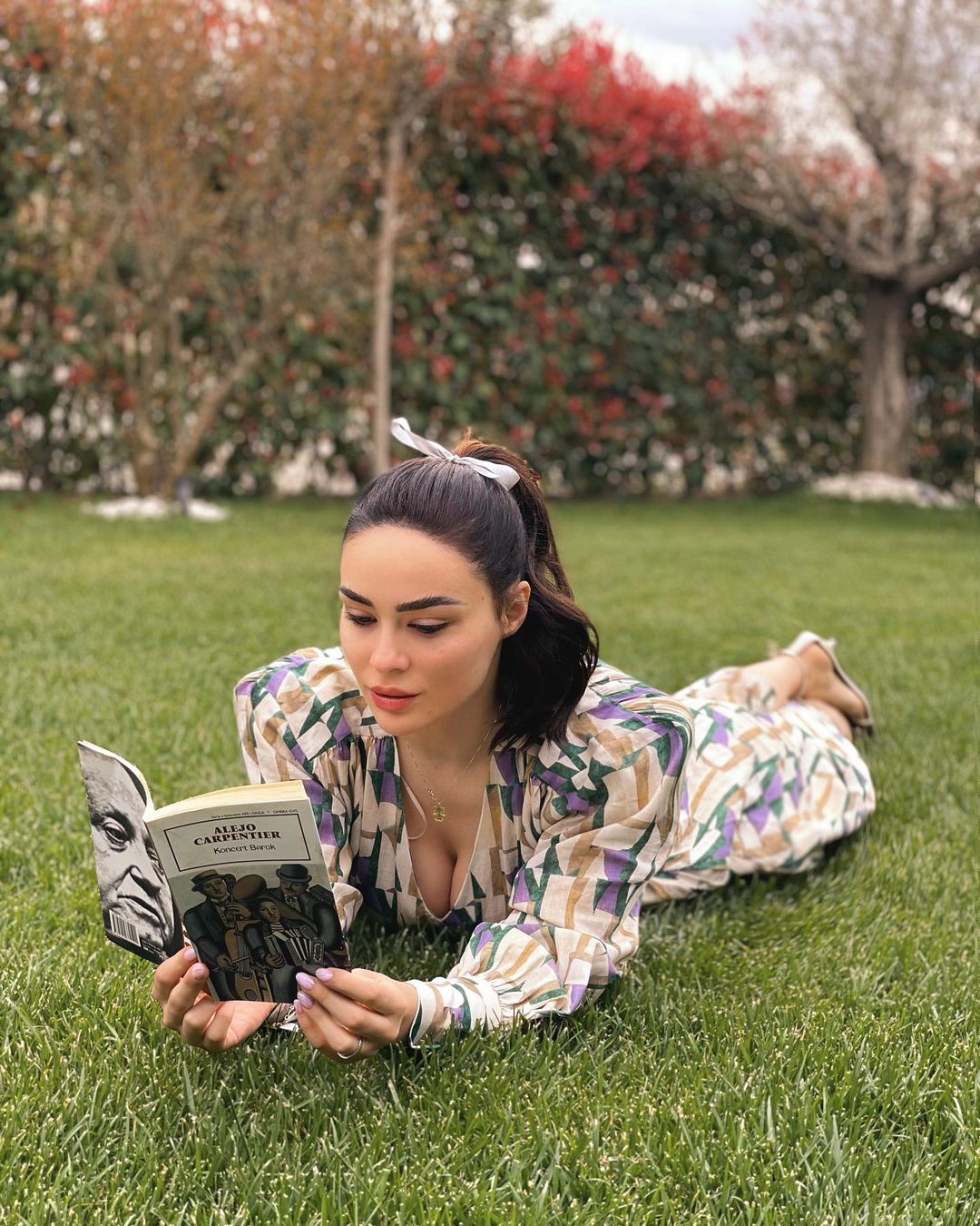 Këngëtarja bukuroshe ka pozuar në oborrin e saj derisa është duke lexuar një libër të autorit Alejo Carpentier, “Koncert Barok”.