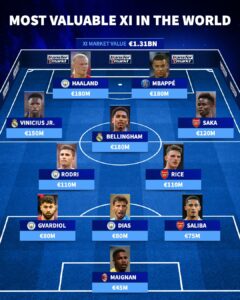 Erling Haaland dhe Kylian Mbappe i prijnë sulmit të frikshëm me vlerë të njëjtë – nga 180 milionë euro.