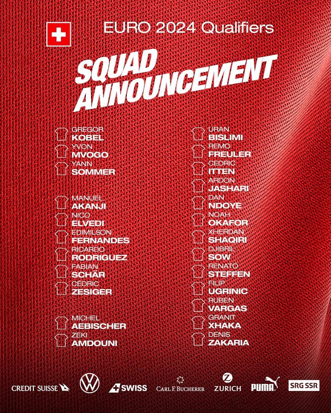 Përveç Xhakës e Shaqirit, të ftuar për këtë ndeshje janë edhe Ardon Jashari e Uran Bislimi.